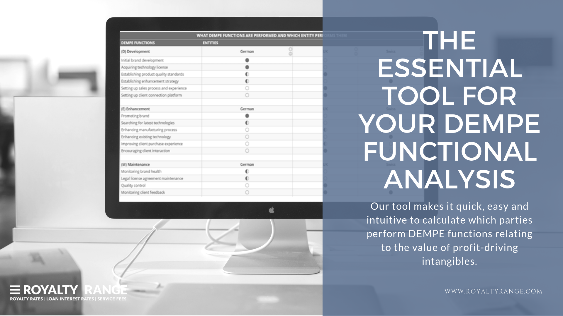Our DEMPE analytics tool is a quick and easy way to get data for your functional analysis. It takes complex calculations off your hands and provides you with accurate, insightful results.